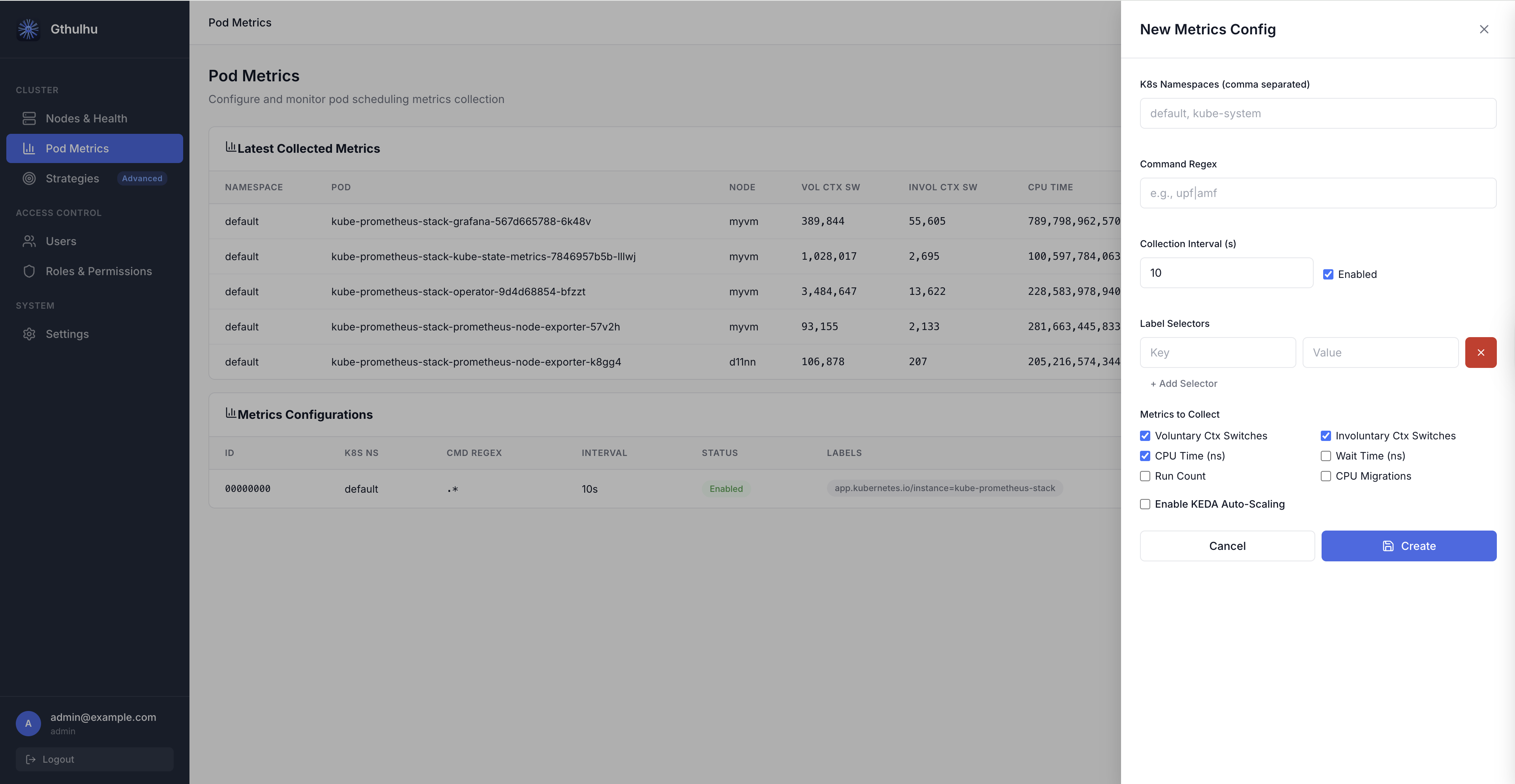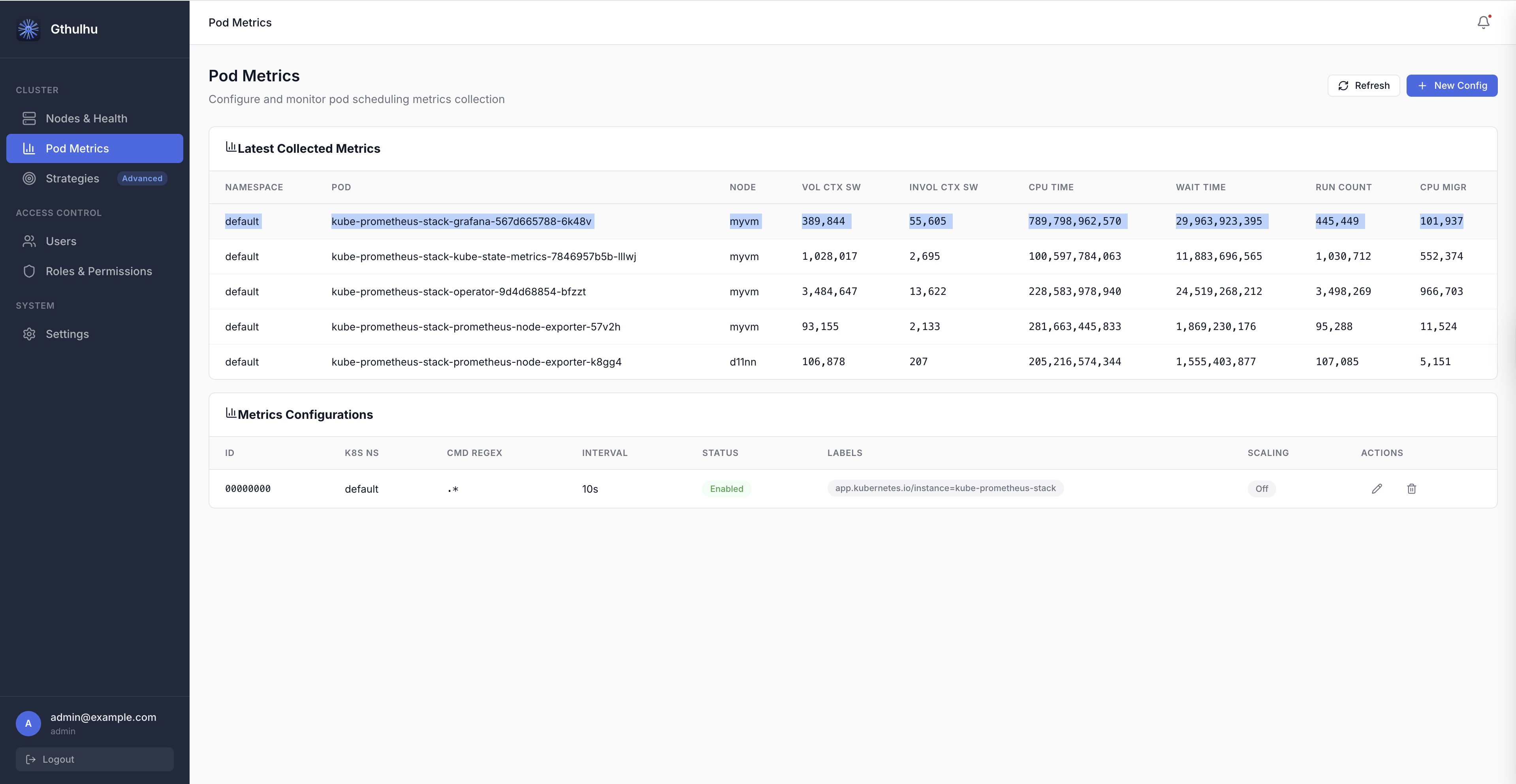 Gthulhu provides pod-level scheduling metrics powered by eBPF, allowing you to observe low-level kernel scheduling behavior for each Pod in your cluster — without modifying application code.